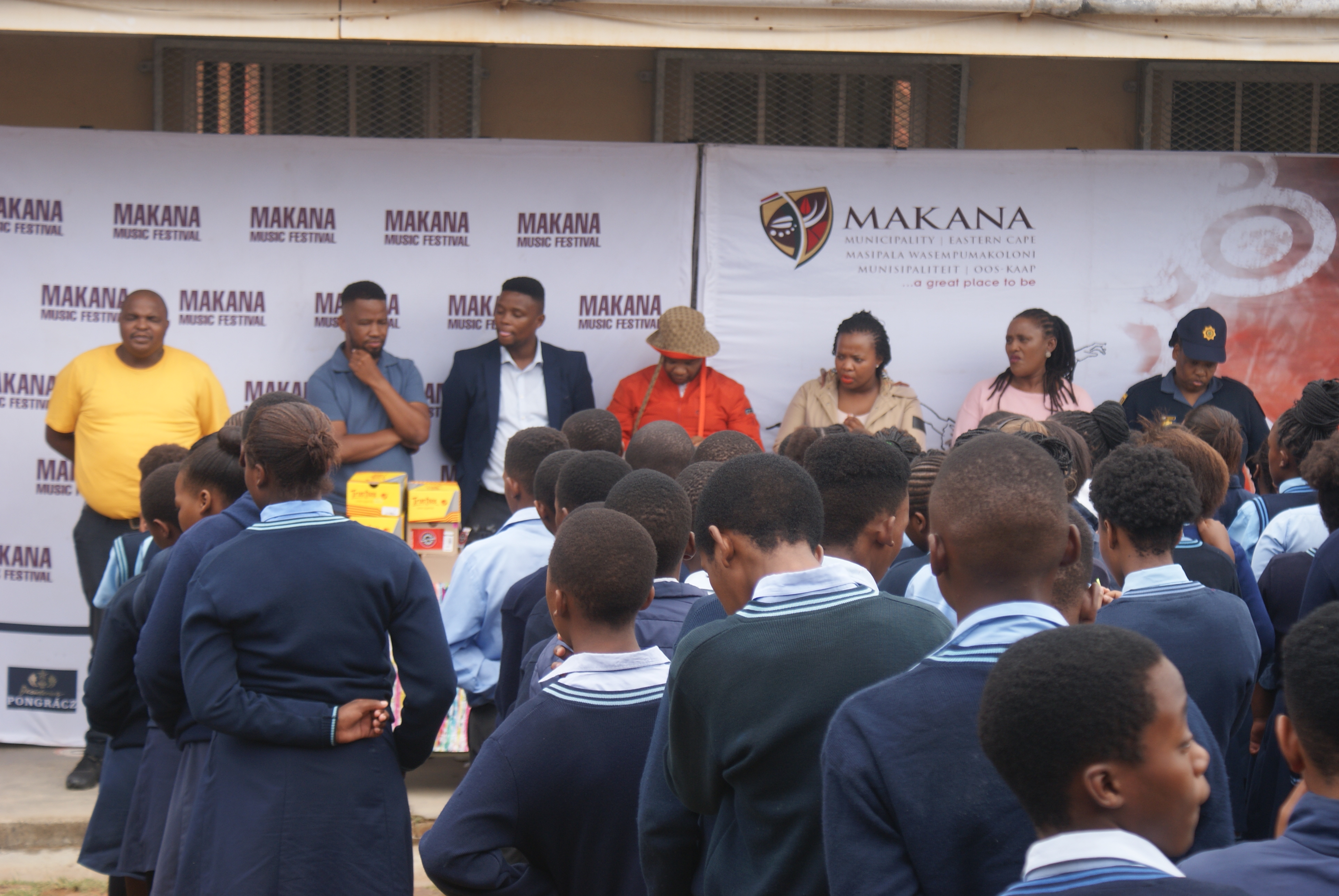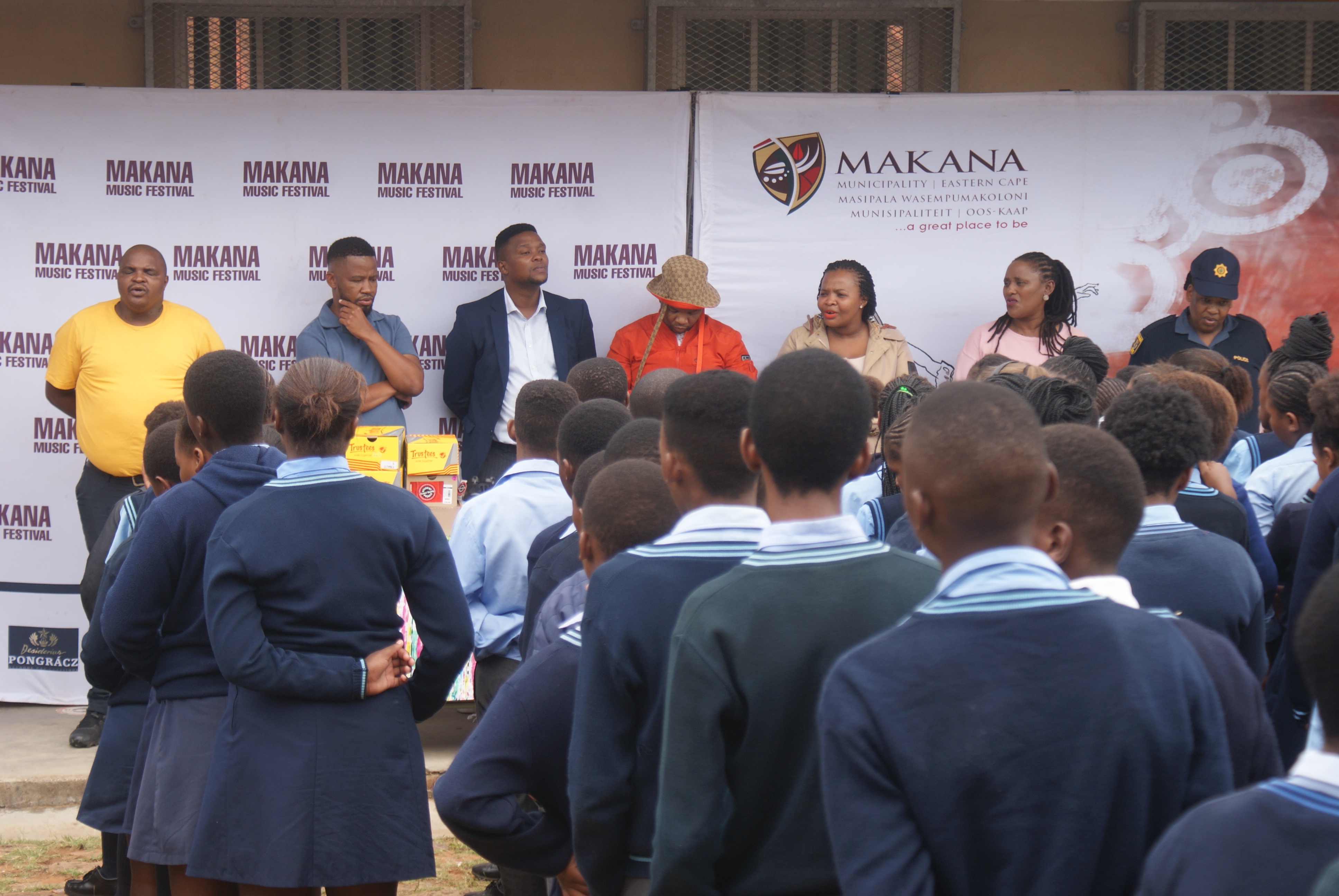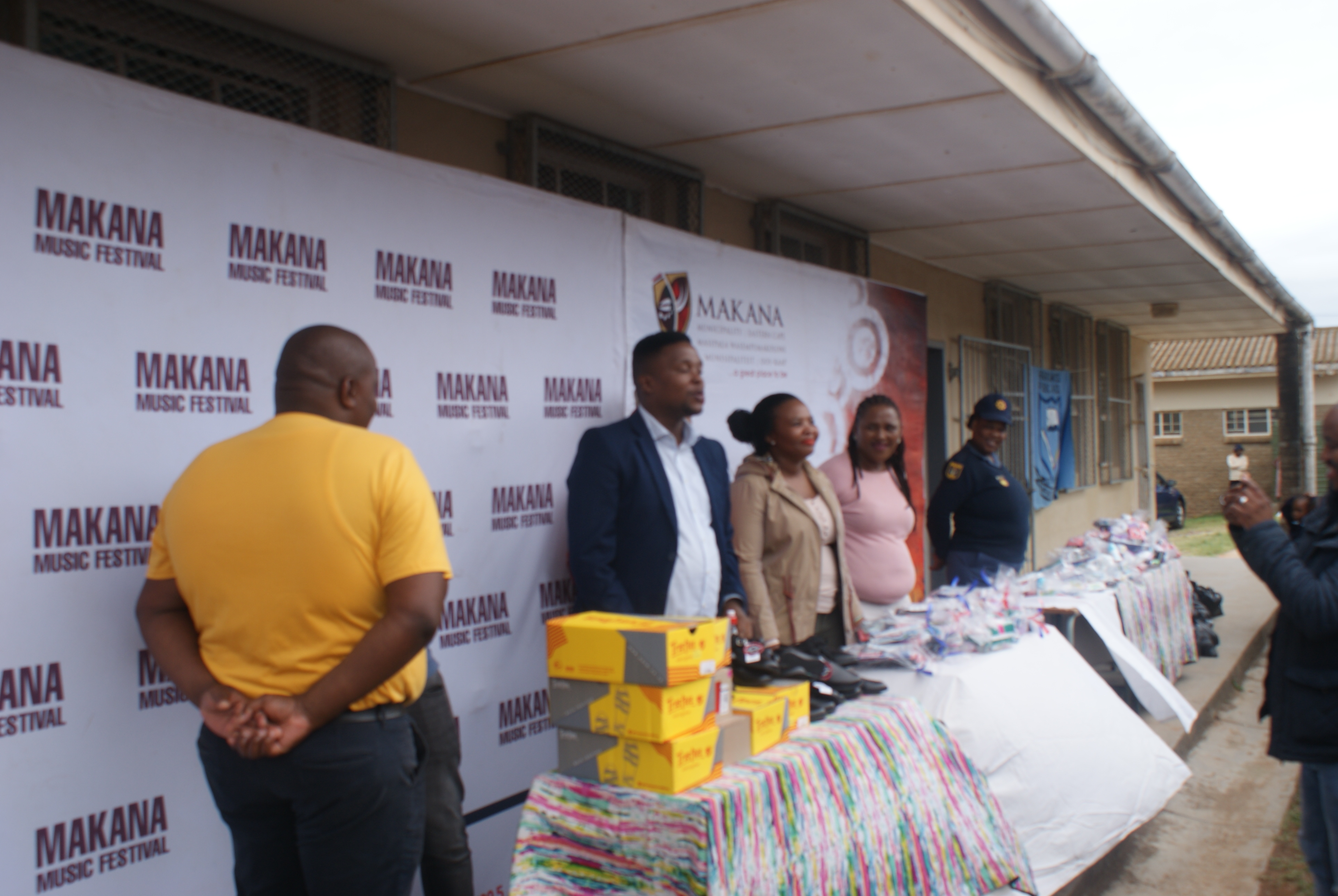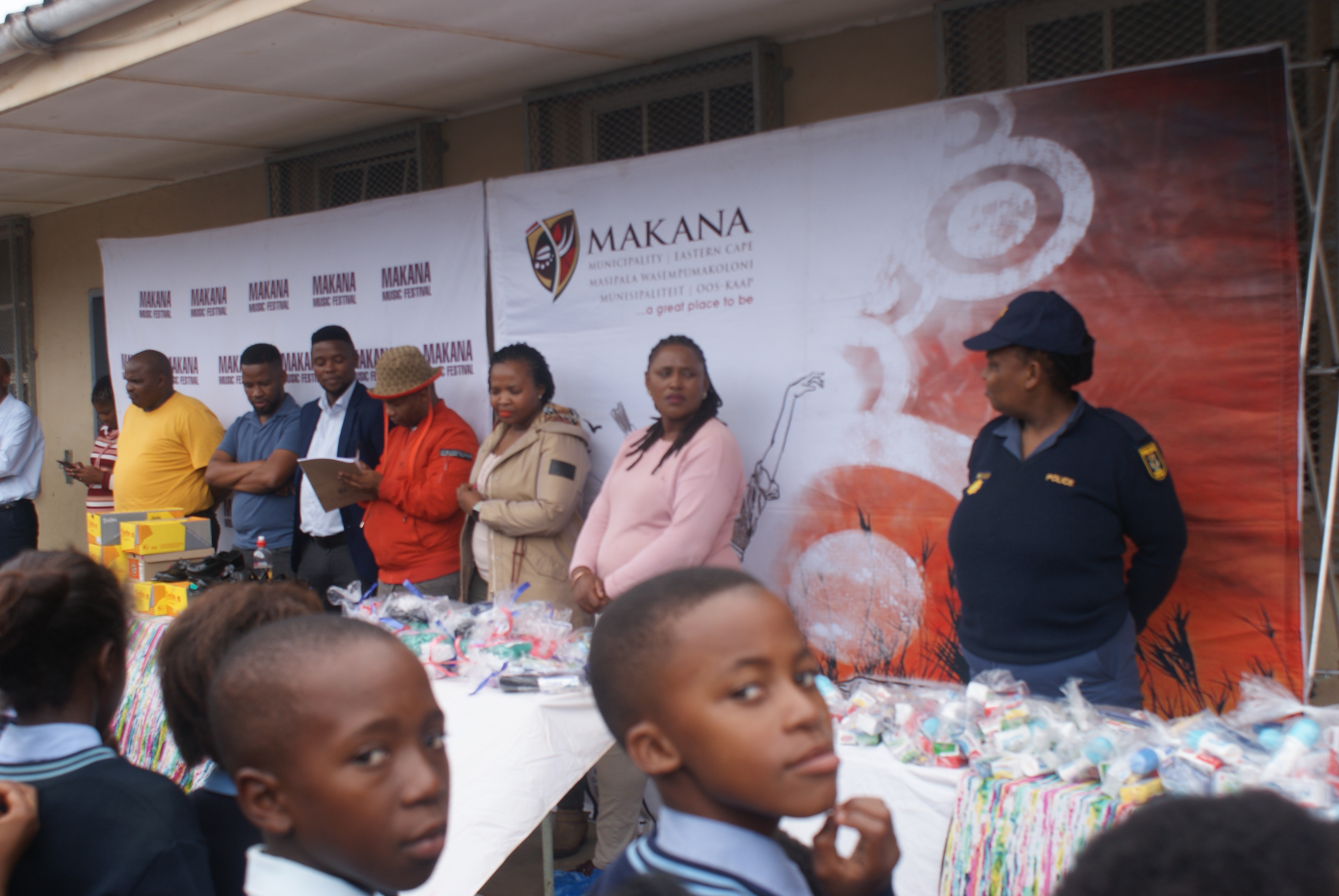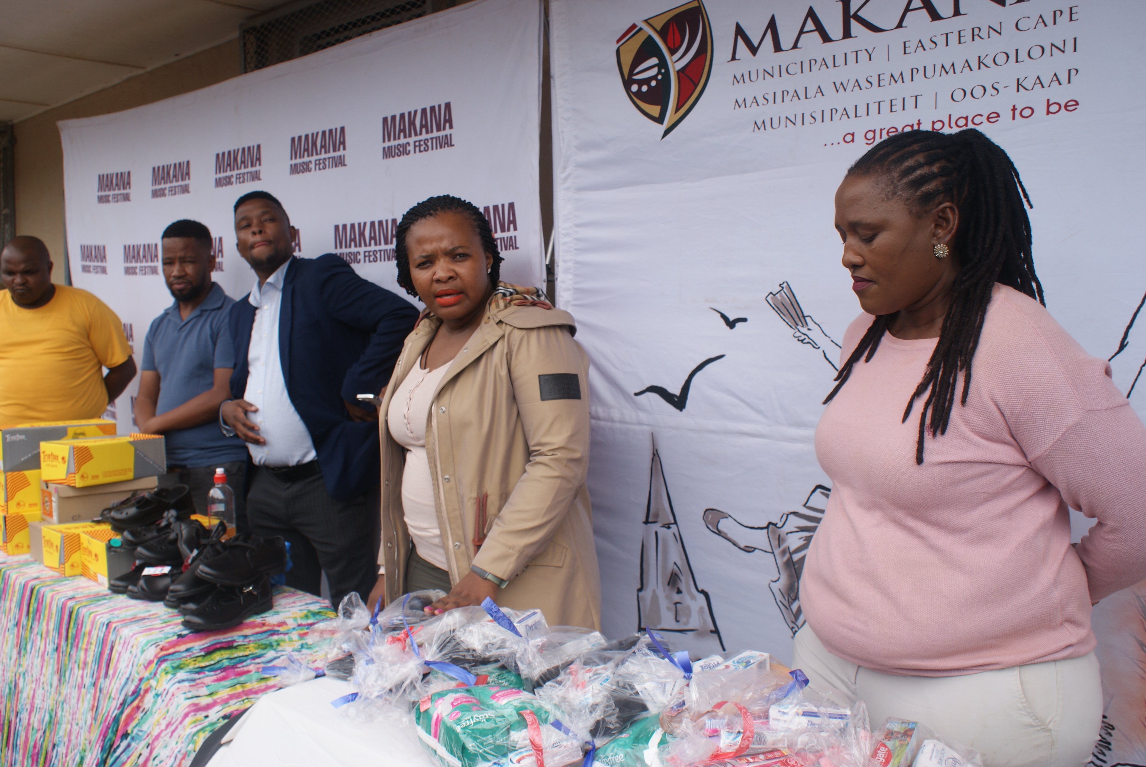 Makana Local Municipality led by the Executive Mayor, Cllr Yandiswa Vara and Mayoral Committee member Cllr Thandolwethu Vayo as well as number of community leaders, such as Umhlobo Wenene presenter Mafa Bavuma, Siyabulela Ivy Madyo from Lutifusion Pty Ltd (Makana Music Festival Organiser), Nomawethu Stuurman from the Pumba Foundation and SAPS donated toiletries, uniform, school shoes, sanitary towels and more to learners of Hendrik Kanise Combined School in Alicedale. The school obtained a 100 percent pass rate last year. All the speakers encouraged the learners to do their best and to stay away from drugs.
