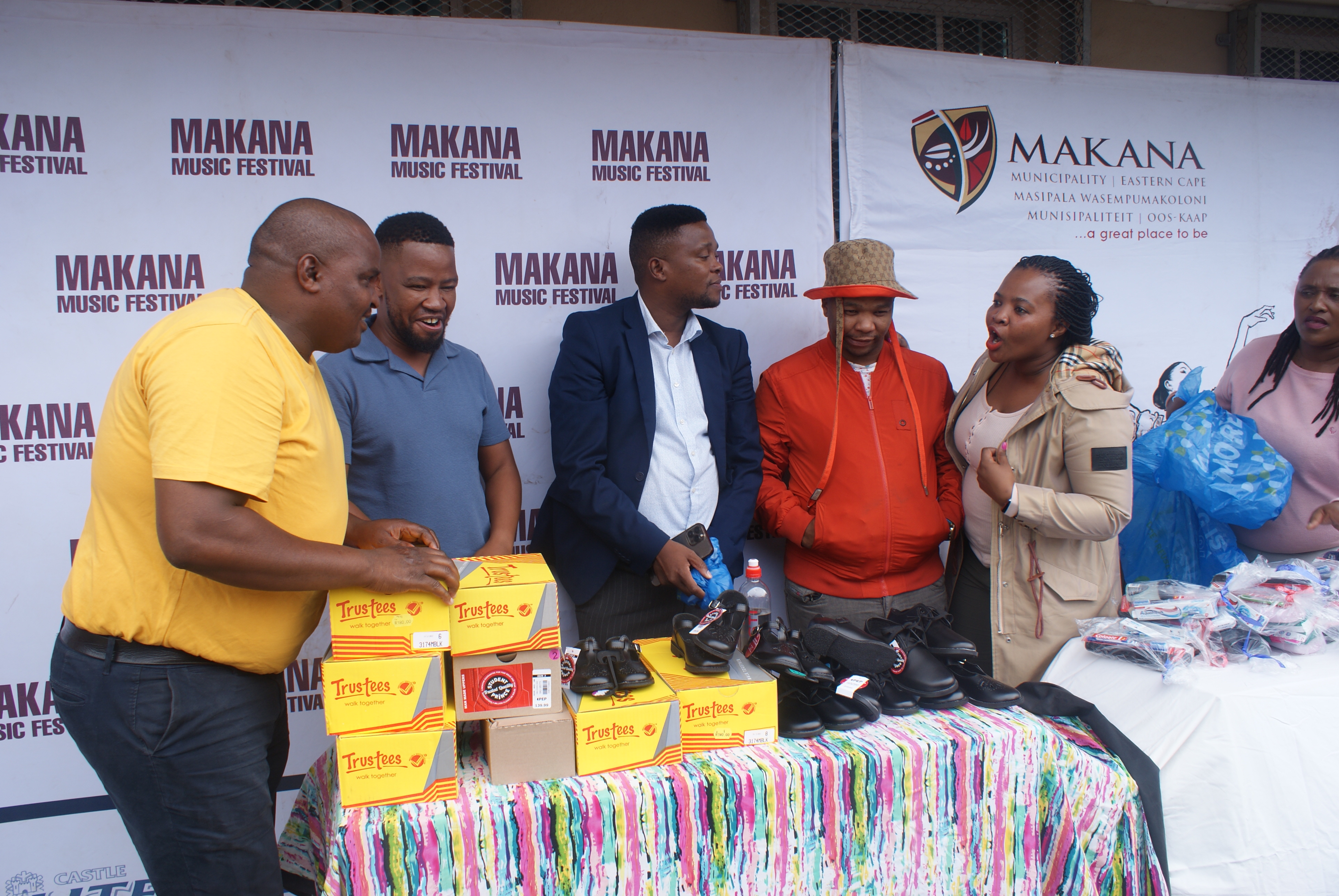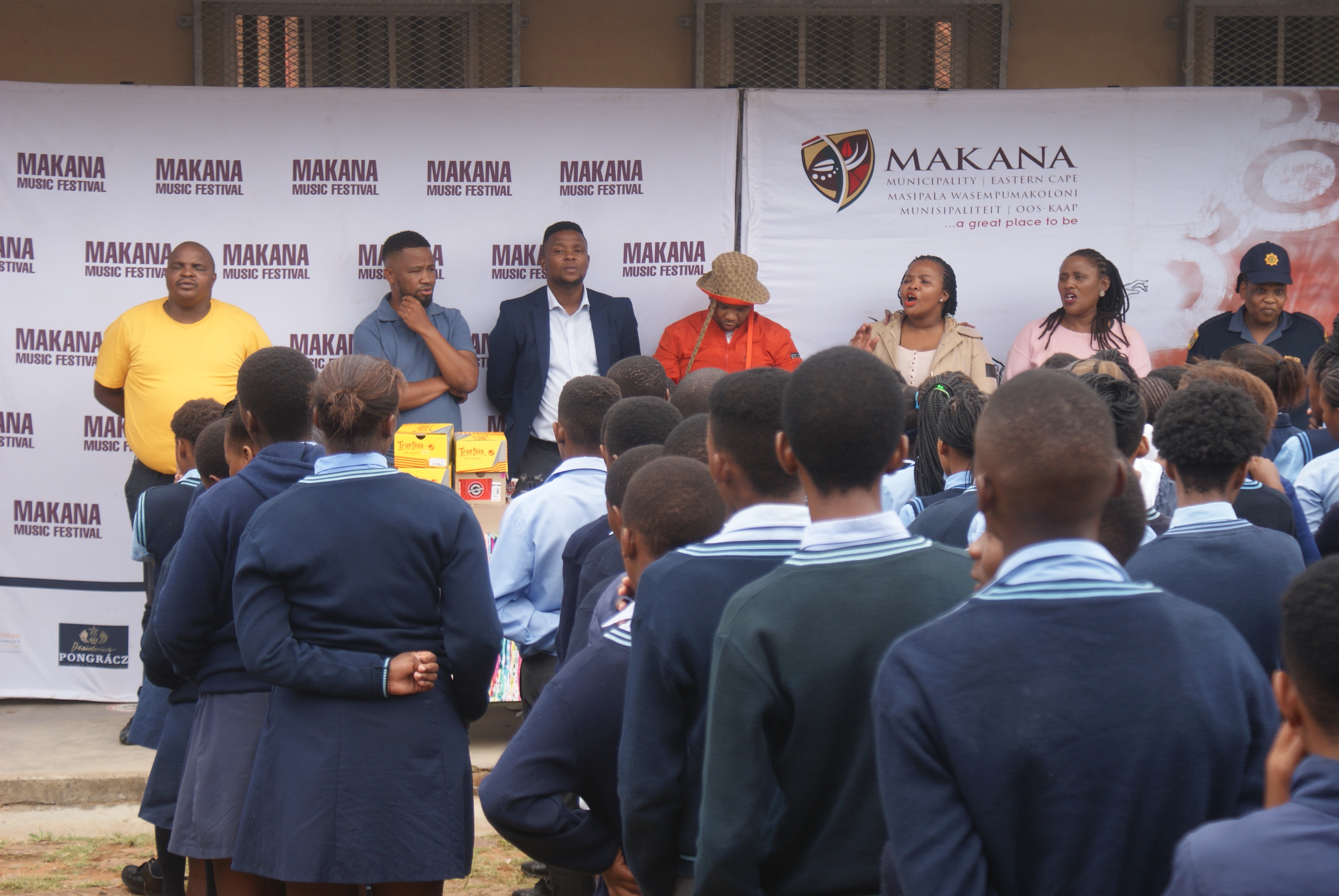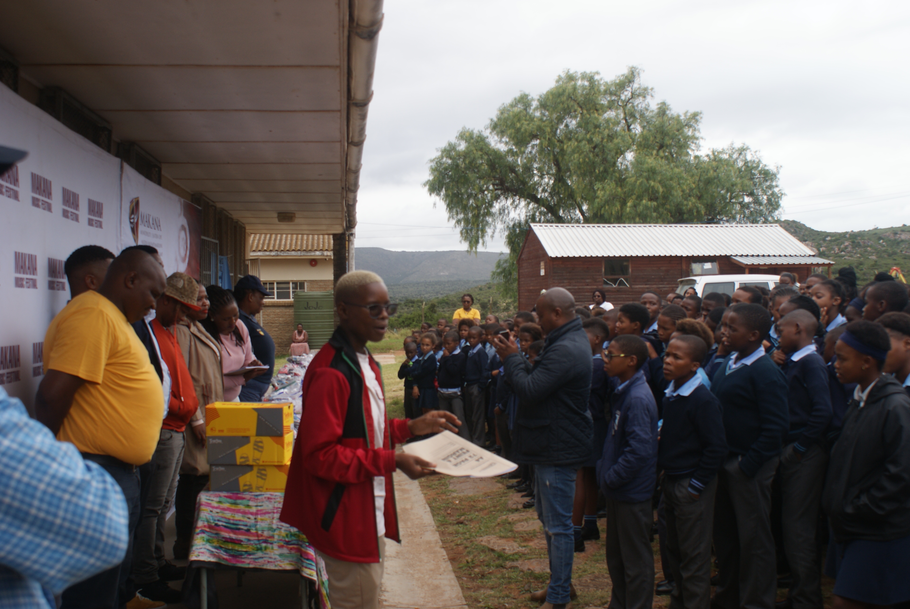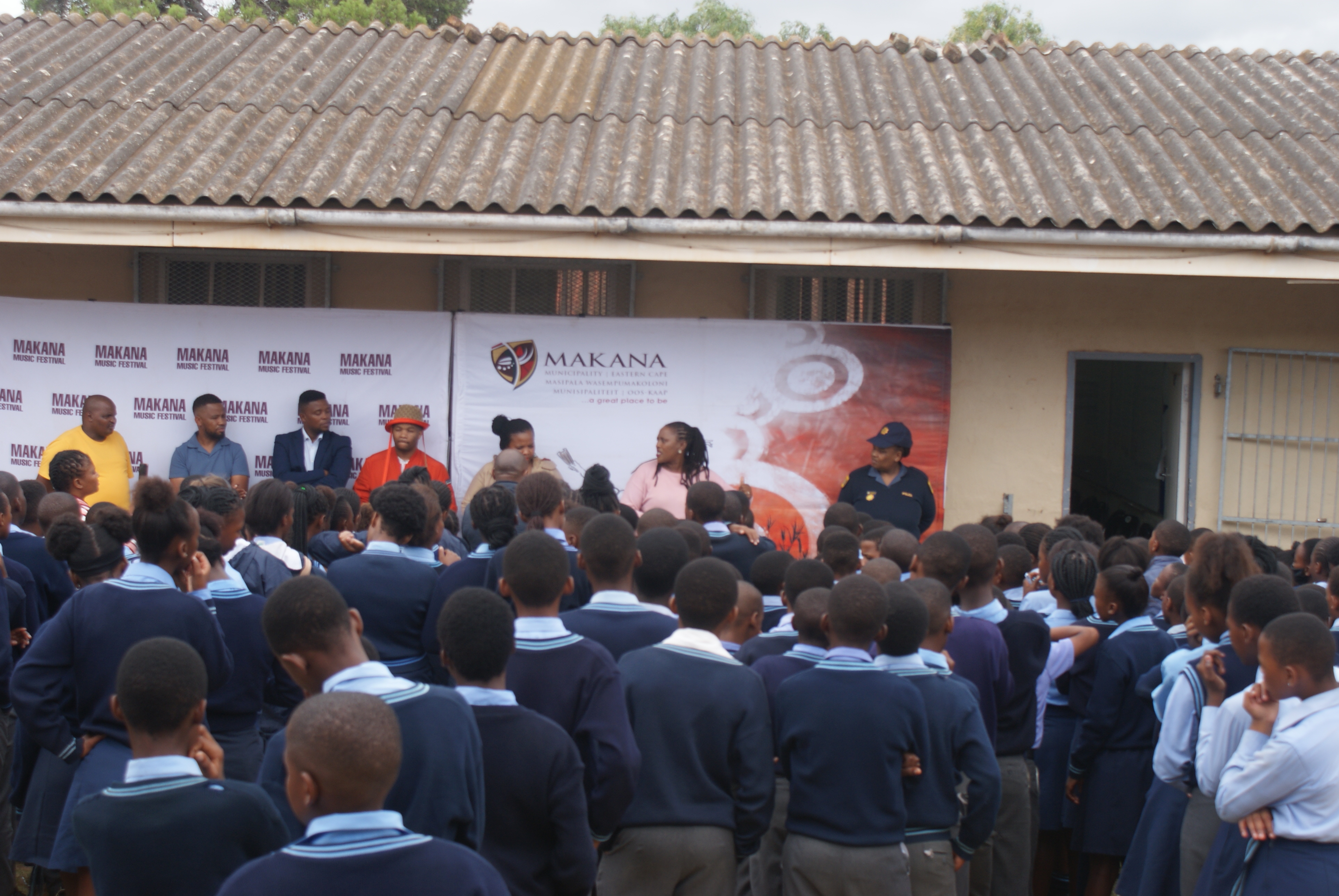 Makana Local Municipality led by the Executive Mayor, Cllr Yandiswa Vara and Mayoral Committee member Cllr Thandolwethu Vayo as well as number of community leaders, such as Umhlobo Wenene presenter Mafa Bavuma, Siyabulela Ivy Madyo from Lutifusion Pty Ltd (Makana Music Festival Organiser), Nomawethu Stuurman from the Pumba Foundation and SAPS donated toiletries, uniform, school shoes, sanitary towels and more to learners of Hendrik Kanise Combined School in Alicedale. The school obtained a 100 percent pass rate last year. All the speakers encouraged the learners to do their best and to stay away from drugs.