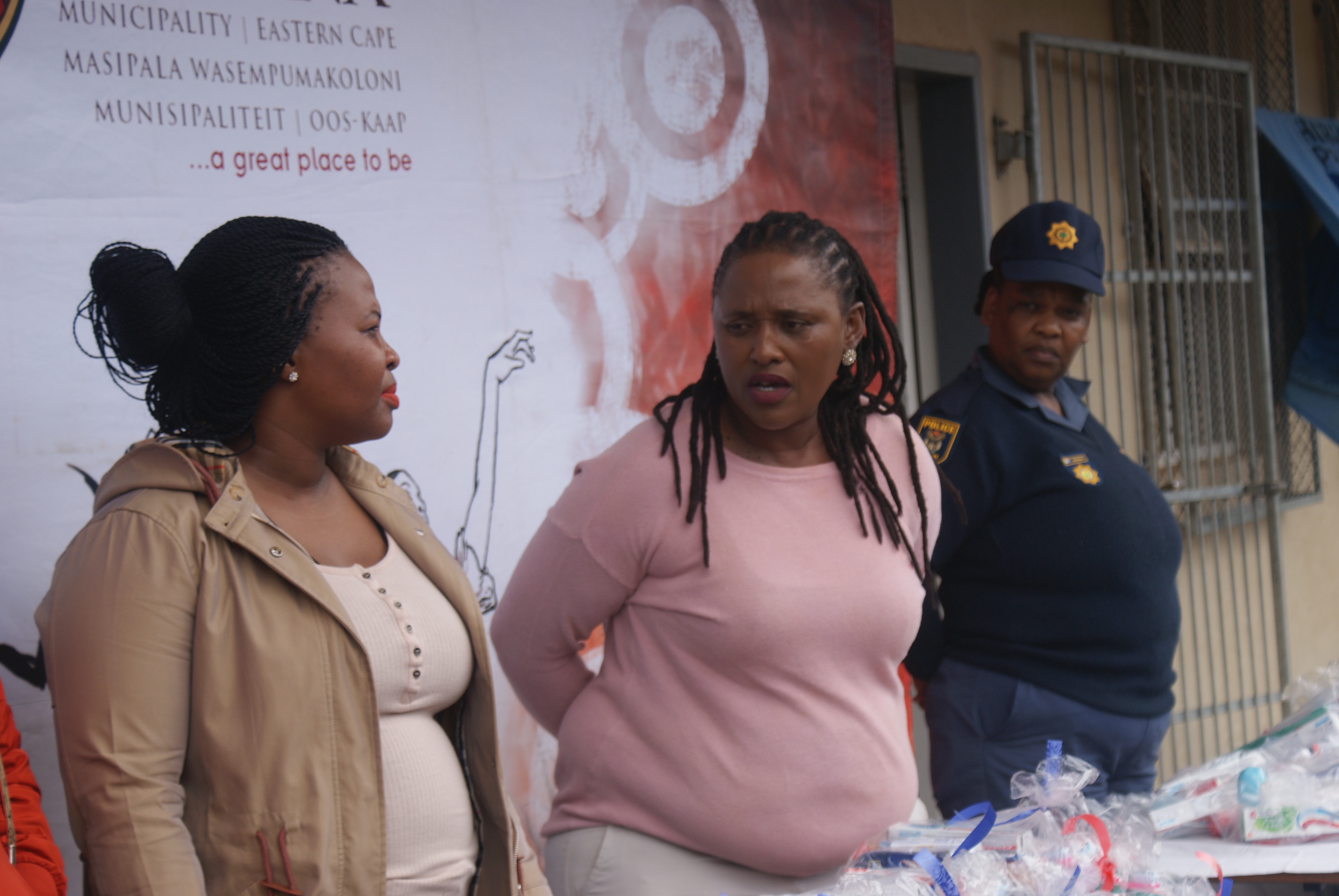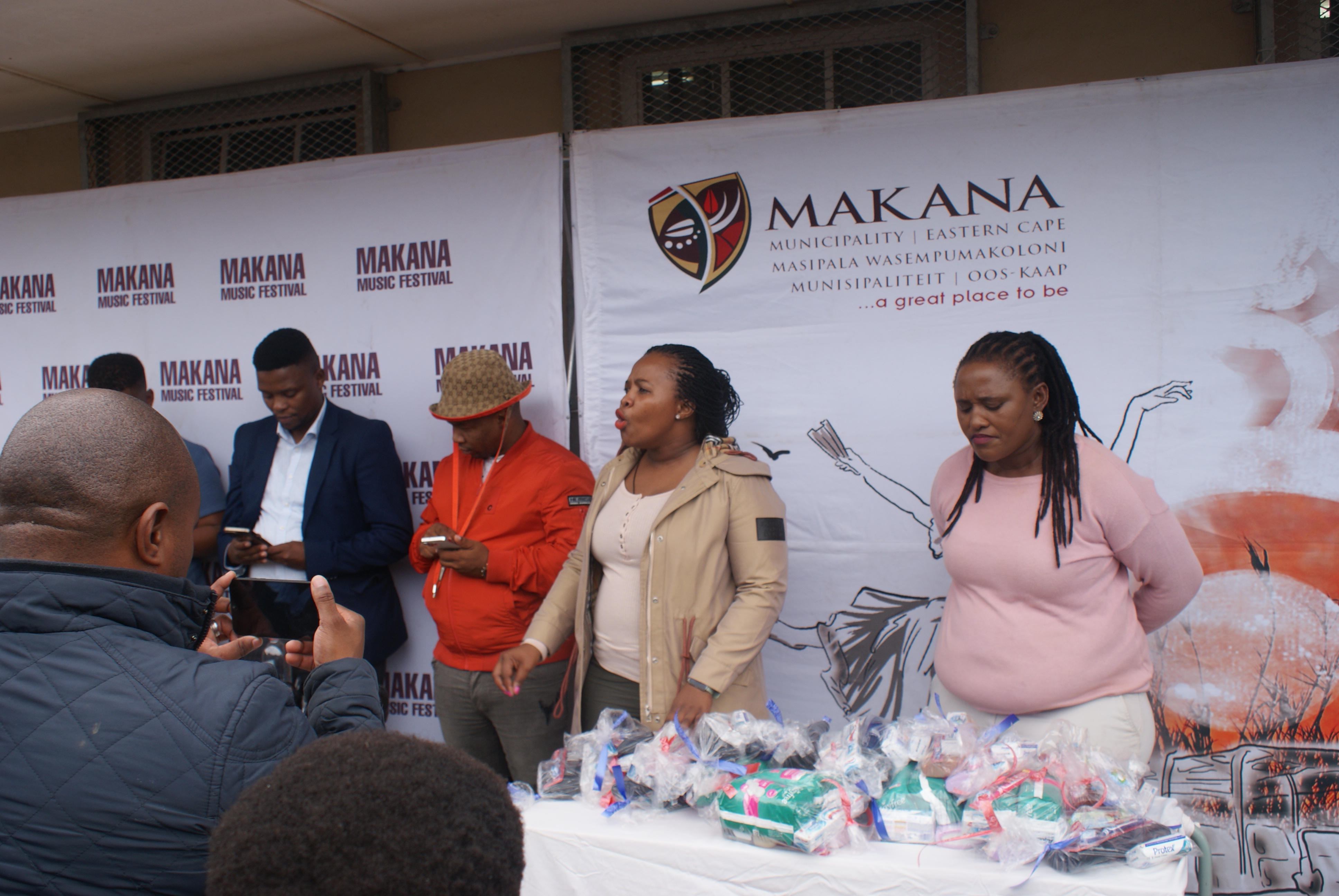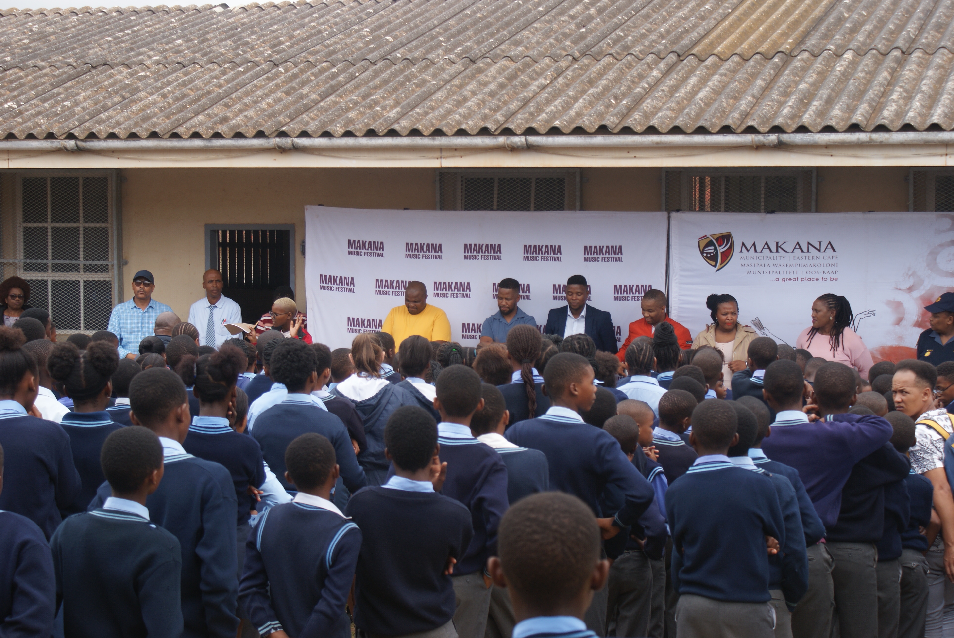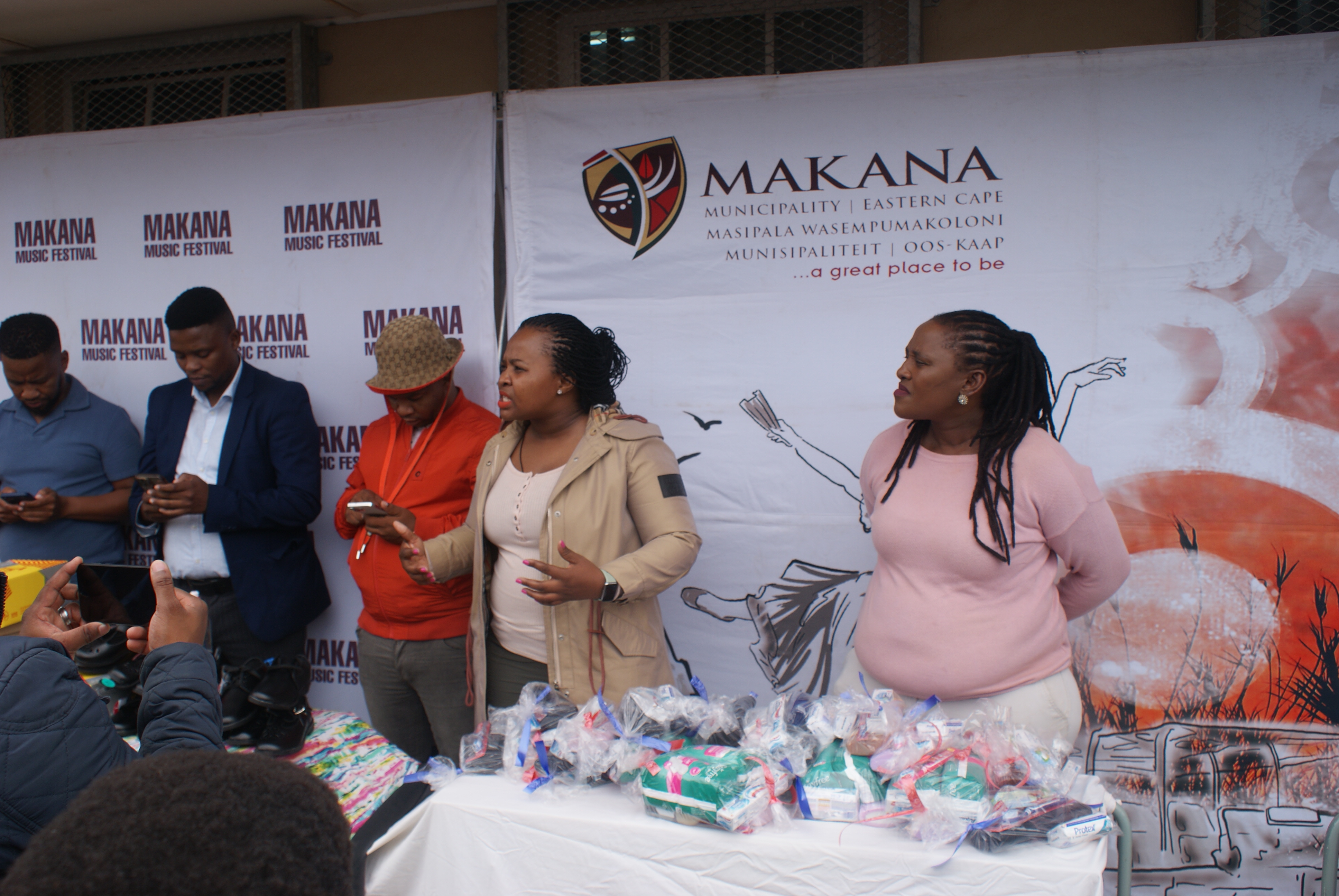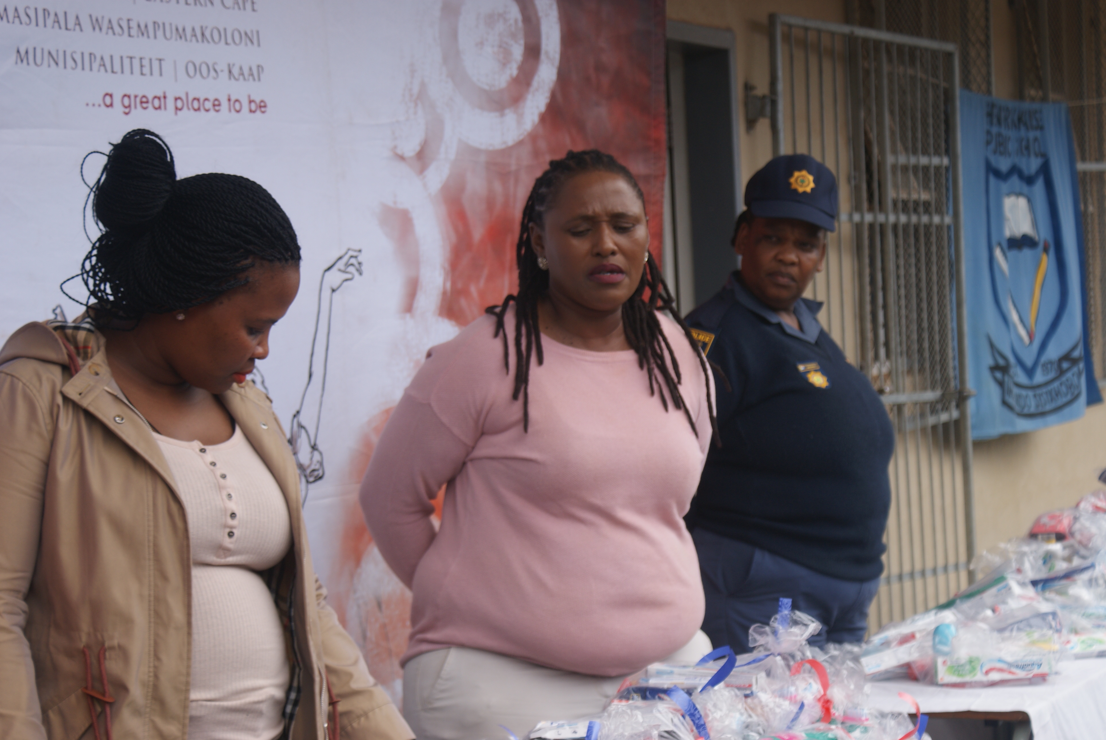 Makana Local Municipality led by the Executive Mayor, Cllr Yandiswa Vara and Mayoral Committee member Cllr Thandolwethu Vayo as well as number of community leaders, such as Umhlobo Wenene presenter Mafa Bavuma, Siyabulela Ivy Madyo from Lutifusion Pty Ltd (Makana Music Festival Organiser), Nomawethu Stuurman from the Pumba Foundation and SAPS donated toiletries, uniform, school shoes, sanitary towels and more to learners of Hendrik Kanise Combined School in Alicedale. The school obtained a 100 percent pass rate last year. All the speakers encouraged the learners to do their best and to stay away from drugs.